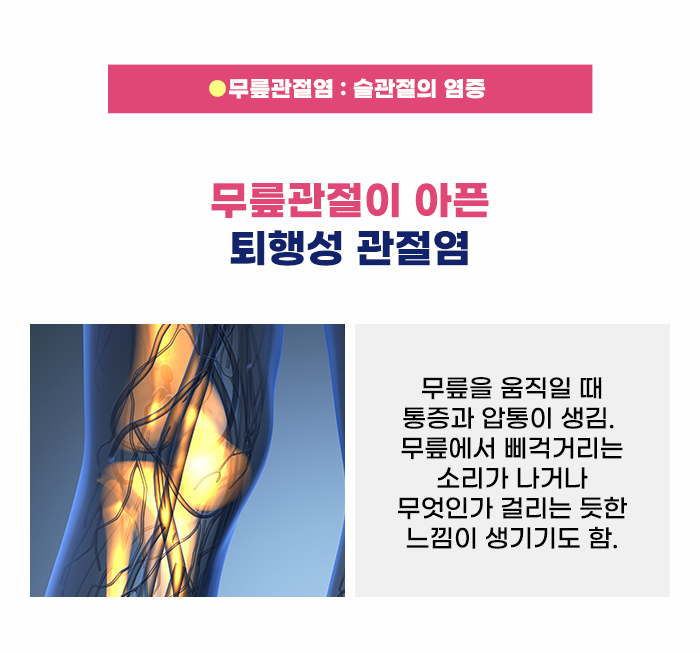 현재 내 무릎관절 건강이 염려되는 분이라면? 무릎은 통증이 생기기 쉬운 부분입니다. 누구나 걷거나 뛰다가 넘어질 수 있고 이럴 때 바닥에 부딪히기 쉬운 부분이 바로 무릎입니다. 그렇다 보니 활발하게 뛰어놀고 주의력이 부족한 어린 시절에는 누구나 무릎을 다쳐본 경험이 있을 것 같습니다.