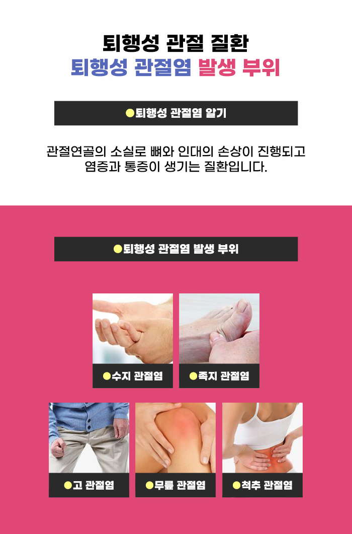 이럴 때 통증은 보이지 않는 이상을 알려주고, 더 큰 문제로 발전하기 전에 막을 수 있게 해주는 중요한 신호입니다. 통증이 있을 경우 작은 것이라도 쉽게 무시해서는 안되는 이유도 여기에 있는데요, 통증을 느낀 경우 방금 이상이 생기면서 통증이 발생한 게 아니라, 내가 알지 못하는 사이에 점진적으로 무릎 관절에 꾸준히 문제가 존재해 왔다가 역치를 넘어서서 통증이 생긴 것일 수도 있습니다. 무릎에 통증이 생기게 되는 대표적인 원인으로 퇴행성 관절염을 꼽을 수 있다고 합니다.