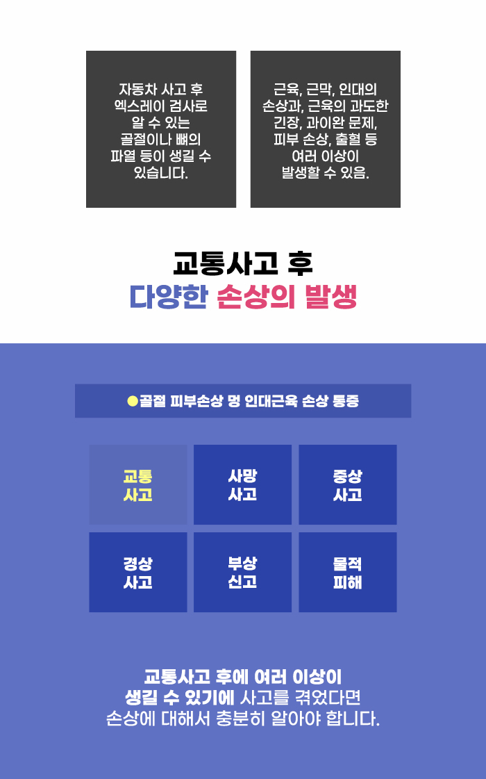 외상으로 인해 허리 부분에 통증이 생기는 분도 있는데요. 특히 교통사고를 겪으면서 뒷목이나 등, 허리 부분에 통증이 생겨 고민하는 분도 있습니다. 골절 문제가 없고, 사고 당시에 이상이 없는 것 같았어도 통증이 이어질 수도 있다고 하는데요. 그렇기에 시간이 지나 통증이 있어도 무시하지 말았으면 합니다. 또한 이런 사고 가능성을 줄이기 위해서 일상에서 꾸준한 노력도 기울이셨으면 합니다.