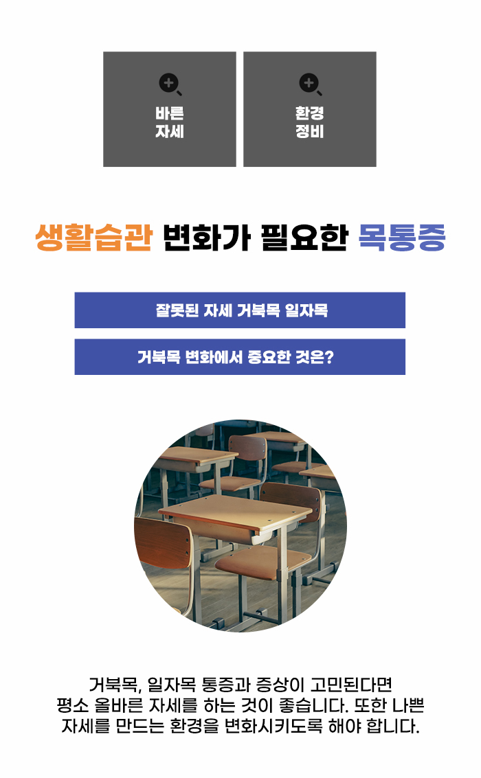 이렇게 사람들의 생활 습관이 바뀜에 따라서 진주추나요법 고민되는 거북목 문제를 갖고 있는 분도 많아지고 있습니다. 그렇다 보니 어린이들, 청소년들의 교실에서도 거북목 상태를 흔히 볼 수 있는 것 같습니다. 고개가 1cm 정도씩 더 앞으로 빠질 때마다 목뼈에 더해지는 하중은 2~3kg에 이른다고 하는데요.