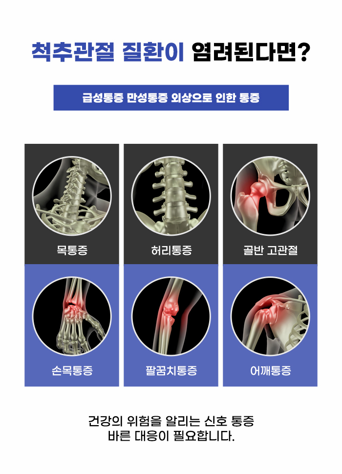 자동차 사고 등 외상으로 몸에 충격이 전달되면서, 다양한 척추관절 질환이 발생하는데 영향을 줄 수도 있다고 하는데요. 혹은 원래 있던 질환이 빠르게 악화될 수도 있다고 합니다. 사고 후 목이나 허리 통증, 부딪힌 무릎이나 어깨, 팔꿈치, 손목 통증 등이 있을 경우 척추관절 질환에 대해서 잘 아는 곳이 궁금할 수 있는데요, 시간이 지나도 통증이 나아지지 않을 경우 세밀히 문제를 파악하길 바랍니다!