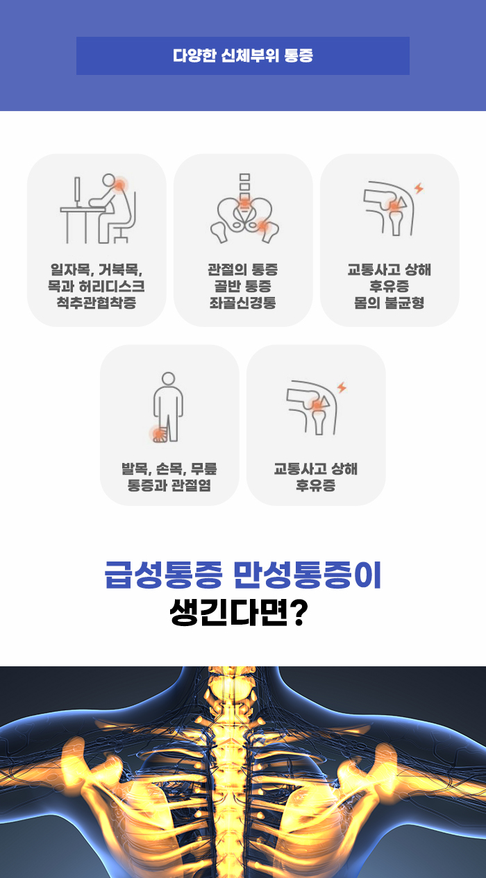 이렇게 잘못된 균형이 생긴 상태가 이어질 경우 각종 질병, 통증 문제가 발생할 수 있습니다. 진주추나요법 고민될 수 있는 질병에 대해서 알아보자면, 추간판 탈출증 디스크 문제, 척추관 협착증 문제, 족저근막염 문제, 퇴행성 관절염 문제, 오십견 등 어깨통증 문제 등 다양한 어려움이 있다고 합니다.
