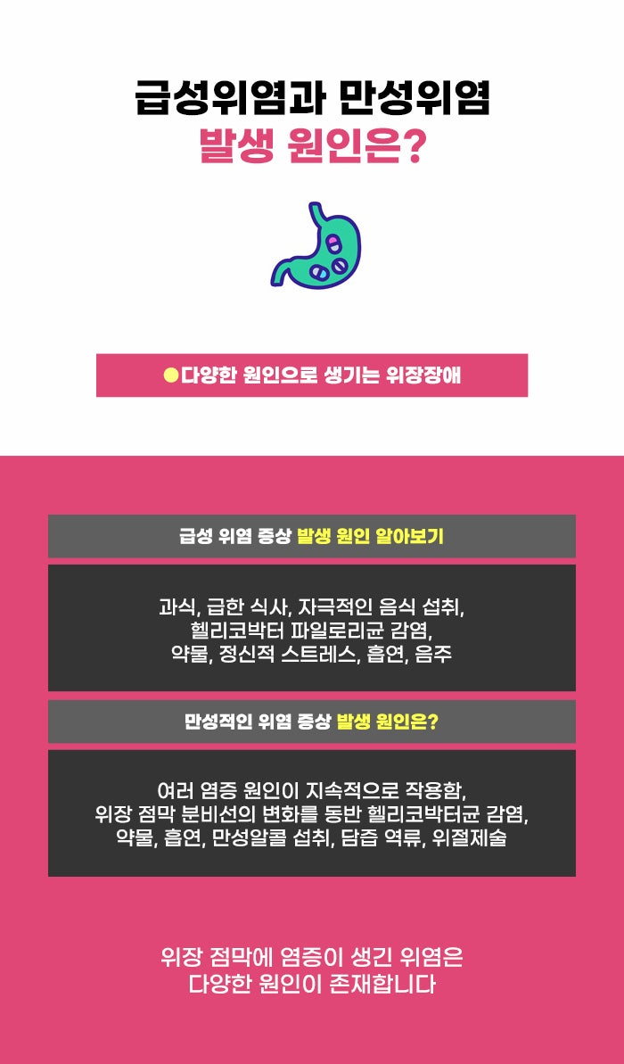 위장 기능이 약해지는 것과 역류성 식도염의 발생에 연관성이 있다고 하는데요, 그렇기에 오랜 시간 소화불량, 위염 등으로 어려움을 겪는 분도 있습니다. 위염은 위 점막에 염증이 생긴 것을 말하는데요. 위염의 여러 불편한 증상이 일상의 질을 낮출 수 있다고 합니다. 어렵게 생각되는 증상이 있을 경우 좋은 생활 습관과 식사 습관을 가질 수 있었으면 합니다!