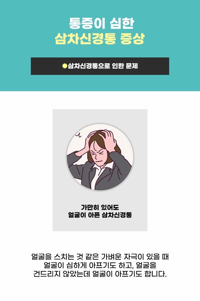 수염을 정리하기 위해 면도를 하며 얼굴을 만지기도 하고, 세수를 하면서 얼굴에 찬물이나 따뜻한 물이 닿고, 손이 닿게 됩니다. 그리고 화장을 하거나 기본적인 선크림, 로션을 바를 때도 얼굴을 만지게 되는데요. 이런 자연스러운 자극에도 얼굴에 강한 통증이 느껴진다면, 매번 일상생활이 고통 속에 있을 수 있습니다.