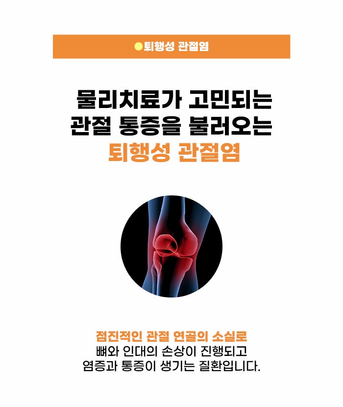 관절을 보호하는 연골은 여러 관절에 존재하는데요. 그렇기에 관절 연골의 소실로 생기는 퇴행성 관절 질환인 퇴행성 관절염 역시 여러 관절 부위에 발생할 수도 있다고 합니다. 무릎 부분의 경우 체중이 실리는 부분이며 서고, 걷는 활동, 달리는 활동에서 몸무게가 대부분 실리는 관절인데요, 이런 이유로 인해 진주물리치료 정보를 무릎 통증으로 찾아보기도 합니다.