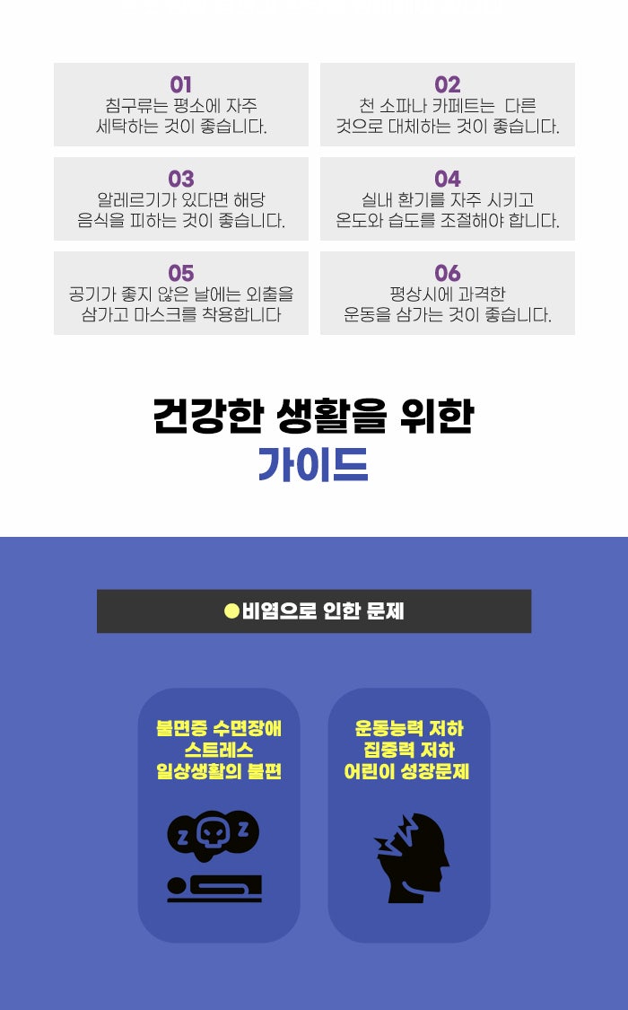 그리고 비염이 반복되고 자극을 주면서 여러 합병증의 위험도 커질 수 있습니다. 코 뒤로 콧물이 넘어가며 불쾌감, 구역감 등을 주는 게 후비루 문제인데요, 그리고 머리 안의 빈 공간인 부비동에 염증, 농이 생기는 것을 부비동염이라고 합니다. 이런 증상도 비염 증상의 악화로 인해 생길 수도 있다고 하는데요. 염증이 진행되면서 더 큰 고민이 될 수도 있는 만큼 비염이 의심된다면 꼼꼼히 문제를 알아보시고 건강한 생활을 꾸준히 지킬 수 있으면 좋겠습니다.