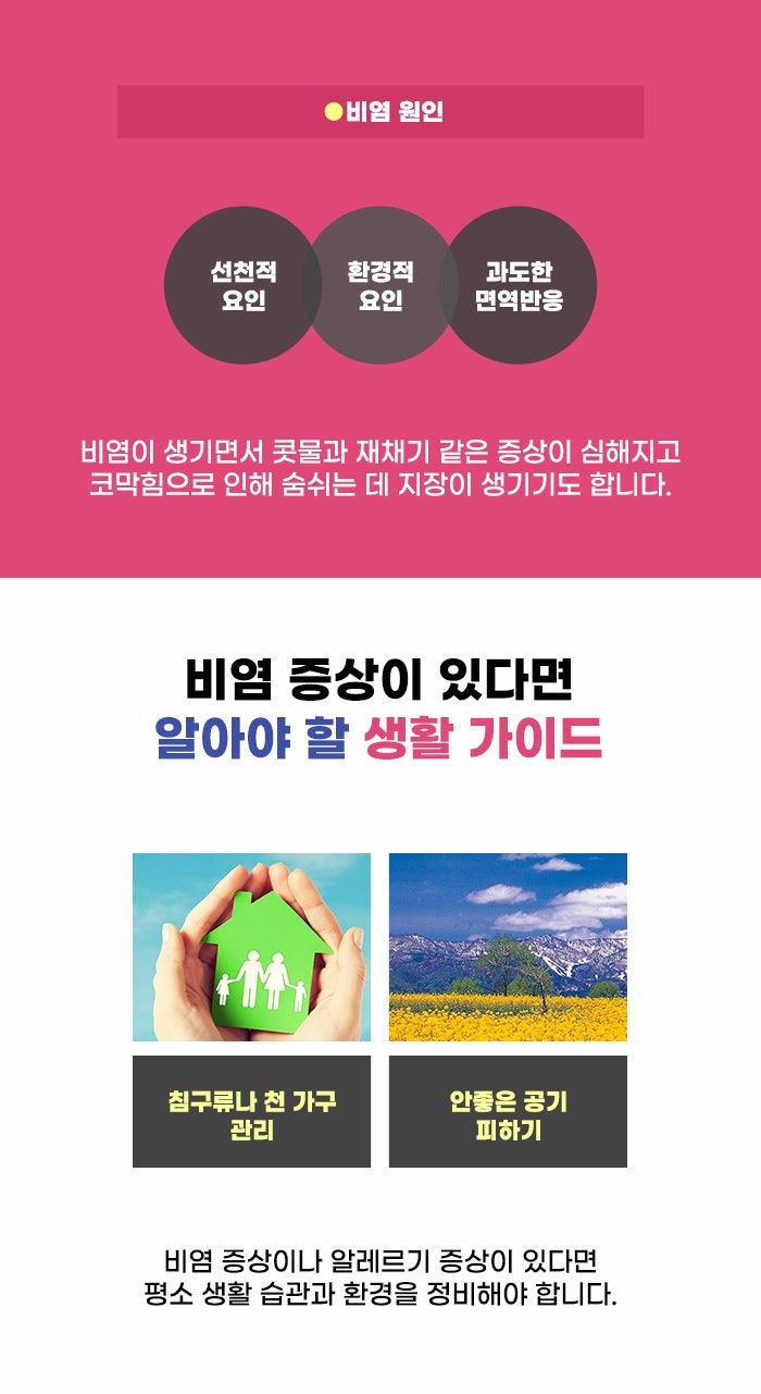 천 가구, 카펫, 커튼 등의 청결 상태에 주의하고 없앨 수 있는 것은 없애는 게 좋습니다. 또한 공기 질을 체크하고 공기가 나쁠 때는 되도록 외출을 줄이는 것도 필요한데요. 외출을 해야 하는 상황이라면 마스크 착용을 하는 것도 좋을 수 있다고 합니다. 그리고 진주 사천 비염 정보 알고 싶어지는 알레르기 문제가 있다면 알레르기 항원과의 접촉을 줄이고 건강을 위해 노력하셨으면 합니다.