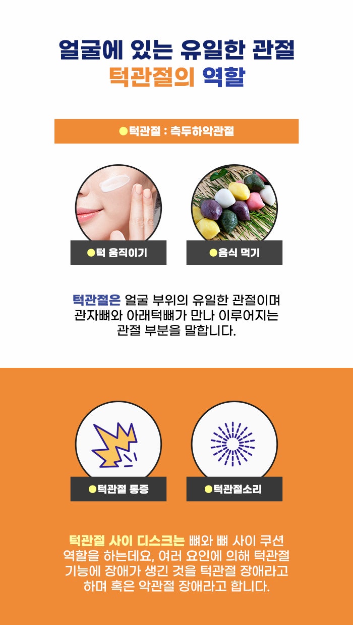턱관절은 양쪽 부분이 이어지며 균형 있게 움직이는 관절 부분입니다. 이 턱관절은 입을 여닫고 음식물을 잘게 부수는 저작 운동을 하는데요. 그렇기에 입을 열어서 하는 다른 사람들과의 대화, 소통, 식사 등 사람이 살아가며 기본적으로 해야 하는 것들과 턱관절의 건강이 밀접한 연관이 있다고 생각할 수 있겠습니다.