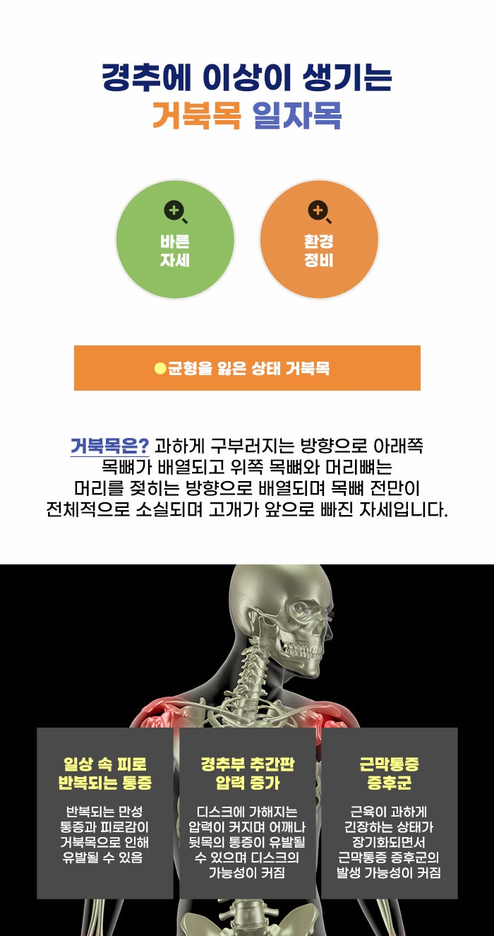 목과 주변 근육이 긴장하면서 얼굴, 턱의 근육도 과도하게 긴장할 수도 있습니다. 이런 상황에서 진주턱관절치료한의원 고민되는 턱 통증이나 턱관절 장애 문제가 악화될 수도 있다고 합니다. 턱관절 증상 외에도 거북목, 일자목은 척추 추간판 탈출증, 근막통증 증후군 등의 여러 통증 질환, 척추 질환과 연관성이 클 수도 있다고 하니 평소 바른 자세를 찾기 위해 노력해야 하겠습니다.