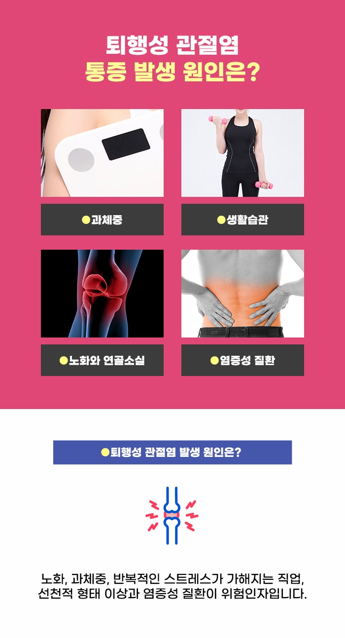 특히 갱년기 시기인 중년에는 여러 질병이 나타나게 되기 쉬운 때이기도 합니다. 관절에 통증이 생기는 퇴행성 관절염 역시 중년 이후 더 많은 분이 고민하는 관절 질환이라고 하는데요. 몸무게가 늘어나게 될 경우 발바닥과 발목, 무릎 등의 전체적인 무게를 감당해야 하는 관절의 부담이 커지게 됩니다.