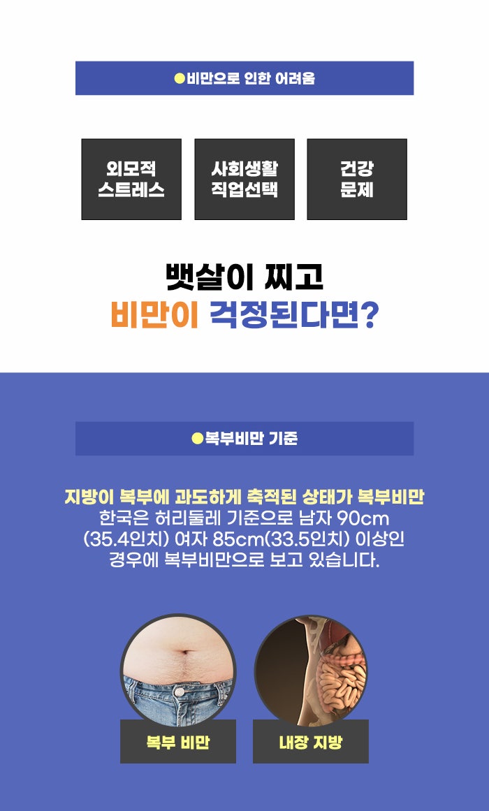 필요한 것 이상으로 지방이 몸에 존재하는 비만 문제와 복부비만