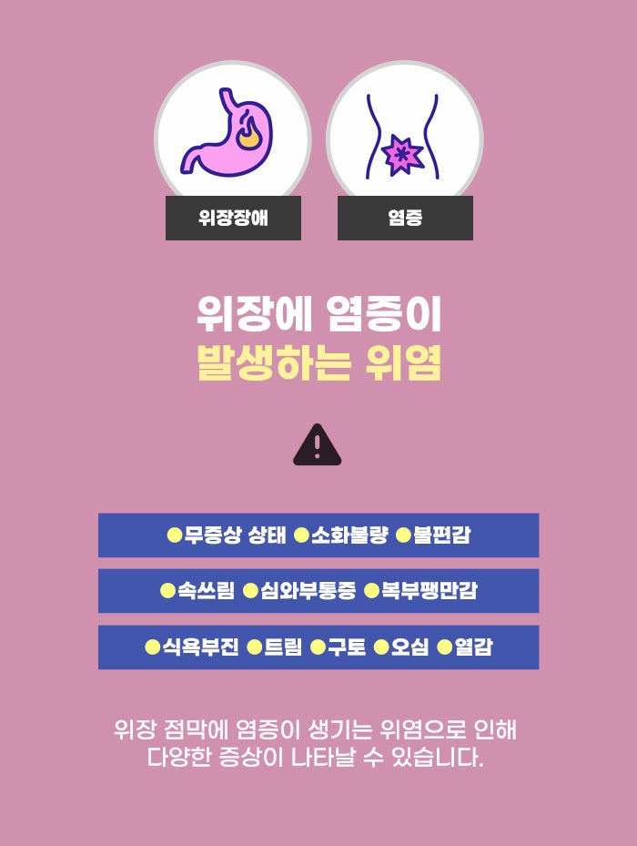 소화불량은 소화가 잘되지 않는 것을 말하는데요. 식사 직후에 더부룩하거나, 배가 아픈 증상이 반복된다면 식욕도 당연히 떨어질 수 있습니다. 자극적인 음식을 먹은 후에 배가 아프거나 위염이 생길 수 있는데요. 위염은 여러 위장 질환 중 가장 흔한 편에 속하는 질환이자, 어린이부터 고령층까지 다양한 연령에서 겪는 질병이라고 합니다.