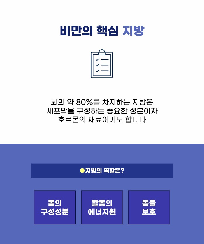 다이어트를 힘들게 했는데 오히려 살이 더 찌기 쉬운 상태가 되기도 하고, 다이어트를 해서 체중을 줄이더라도 다시 체중이 돌아오는 경우도 있습니다. 그리고 지방에 대해서 좋지 않다는 생각만을 갖고 다이어트를 하다가 정신적 고통을 겪는 분, 식이 장애를 겪는 분도 있는데요. 그렇기에 지방의 역할에 대해서 알고 건강한 방식의 다이어트를 하셨으면 합니다.