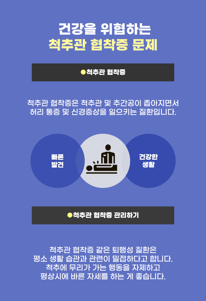 그리고 노화에 의해 영향을 받는 다른 척추질환으로 척추관 협착증이 있는데요, 거북목 문제가 있을 경우 바른 자세를 찾는 게 필요한 것처럼, 척추관 협착증 같은 퇴행성 질환의 경우에도 바른 자세를 갖는 게 중요하다고 합니다. 진주거북목 고민되는 분이라면 사라진 몸의 밸런스를 찾을 수 있었으면 합니다!