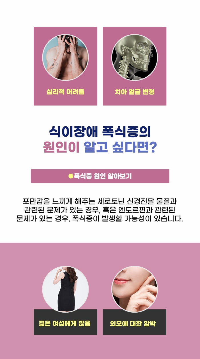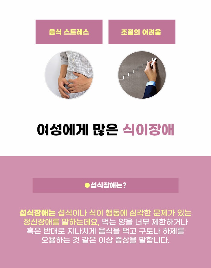 비만 상태는 필요한 것 이상으로 몸에 지방이 축적된 것인데요. 건강하지 못한 식사 습관이 오래 이어져 온 결과라고도 볼 수 있습니다. 특히 여성에게 많은 고민 중 하나로 음식 조절이 어렵고 건강한 식사를 하기 어려운 식이장애 문제가 있다고 하는데요.